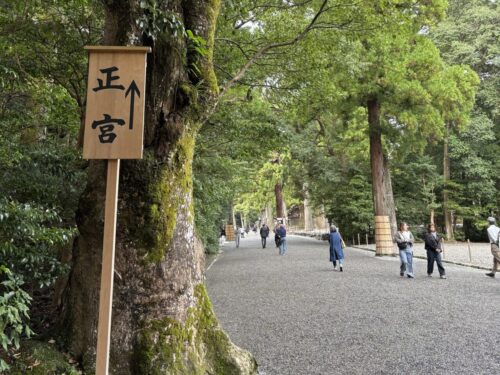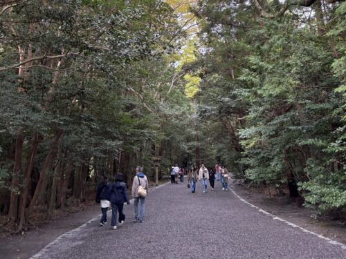 最初の鳥居をくぐると大きな木々に囲まれた一本道があり、それをひたすら進んでいきます。筆者が外宮を訪れたのは朝の8時ごろだったのですが、すでに多くの参拝者の方がいらっしゃいました。(ちなみに参拝は朝5時から可能のようです)