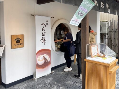 ”へんば餅”と呼ばれるお餅を発見。へんば餅とは「その昔、お伊勢周りの際に旅路で乗ってきた馬を降りて返さなければならない」というルールがあったようで、その際に馬を返す場所=返馬所(へんばじょ)の近くで餅が食べられていたことが由来」となっているようです。