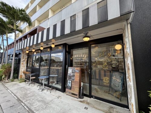 TIMELESS CHOCOLATEさんは沖縄県本島中部、北谷町にあります。宮城海岸と呼ばれる海沿いでオシャレなカフェやレストラン、また外国人の方も多く集まる場所にお店を構えています。
