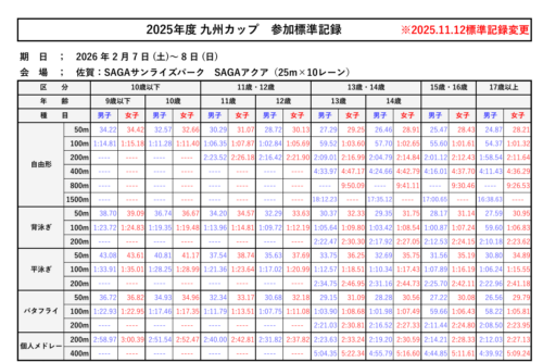 2月に佐賀県で行われる「九州カップ水泳競技大会」の標準記録を突破する事で、ここ何年かひそかにチャレンジしていましたが、うまくいかず。。。「今年こそは必ず!」と思いチャレンジしました。