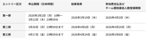 エントリーは何度か時期を分けて行われるようです。以下の画像をご参考ください▽▽▽